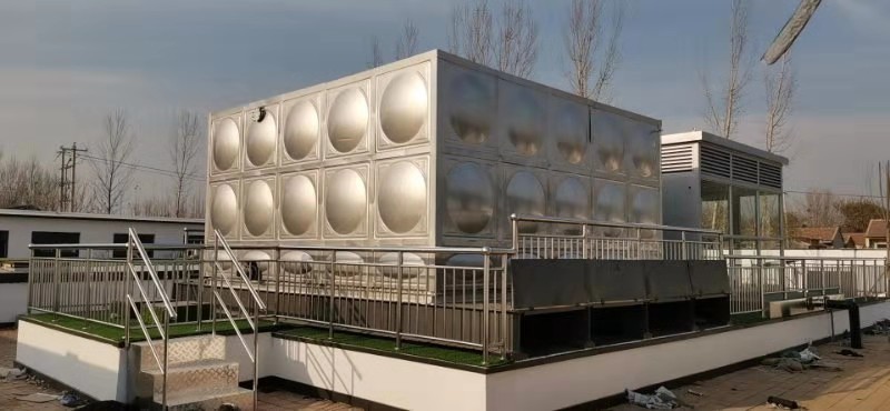 河北省滄州市東光縣河畔新城裝配式不銹鋼保溫水箱已經安裝完成,保溫為聚氨酯保溫50厚,外殼為304不銹鋼。
